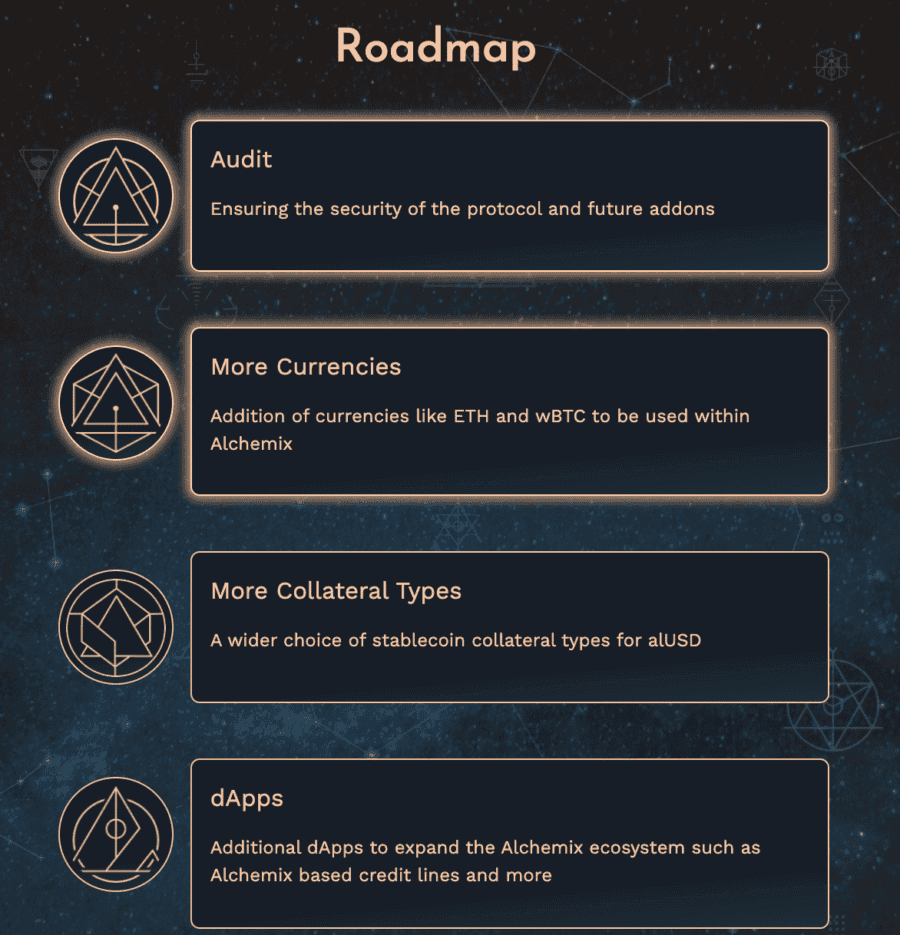 - Enable a wider variety of stablecoins to be used as collateral for alUSD. Similar to how DAI is a multi-asset-backed stablecoin, alUSD looks to tread a similar path. The idea is that alUSD can be backed, not only with stablecoins but with some NFTs too. Price stability for the assets is of paramount importance, so they are also looking into a partnership with Chainlink to take care of this aspect. According to their white paper, users may want to take advantage of some arbitrage opportunities "by minting alUSD with the less expensive stablecoin to pay off debt minted from a more expensive stablecoin". When enough people do this, it will help stabilise the price of the supported coins.
