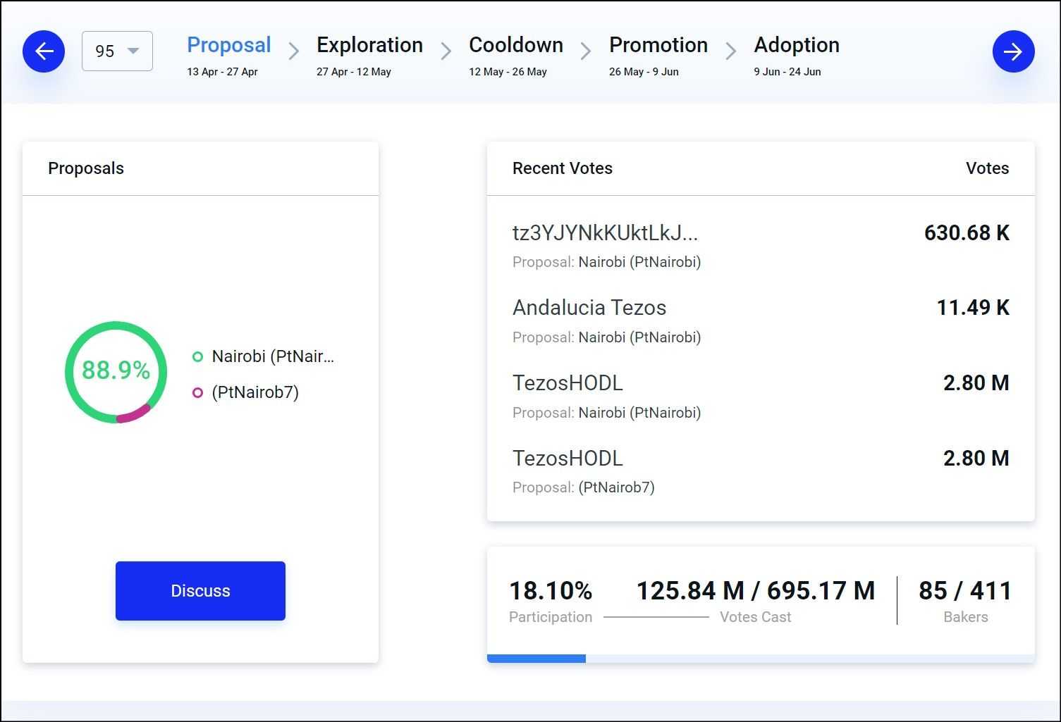 The Tezos improvement proposal process comprises five stages, each lasting five baking cycles, or roughly two months and ten days. The stages are as follows: